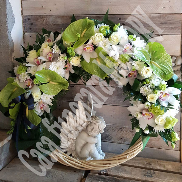Ultimul omagiu adus celor dragi se concretizează printr-o coroană sau jerbă florală. Acestea pot fi realizate dintr-o gamă variată de flori, iar dimensiunea și modelul sunt alese în funcție de preferințele dumneavoastră. La cerere, putem adăuga și un mesaj de rămas-bun scris pe o panglică personalizată.